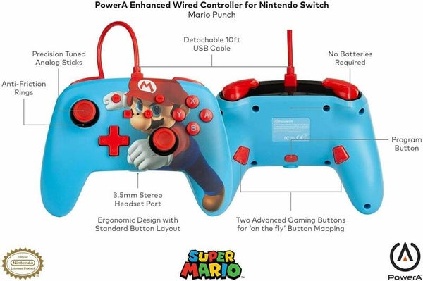 Manette Filaire Avec bouton arrière Mario Punch Switch Neuf