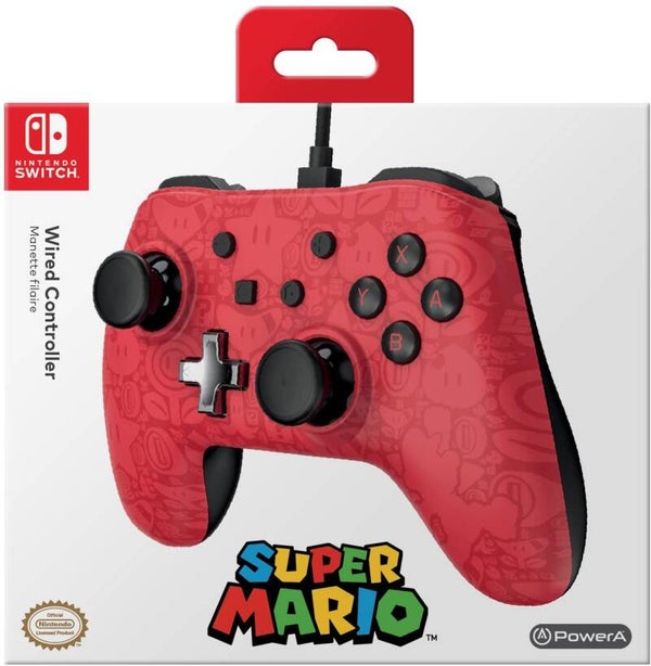 Manette filaire Mario pour Nintendo Switch sticks analogiques interchangeables. Caoutchouc doux pour plus confort.
