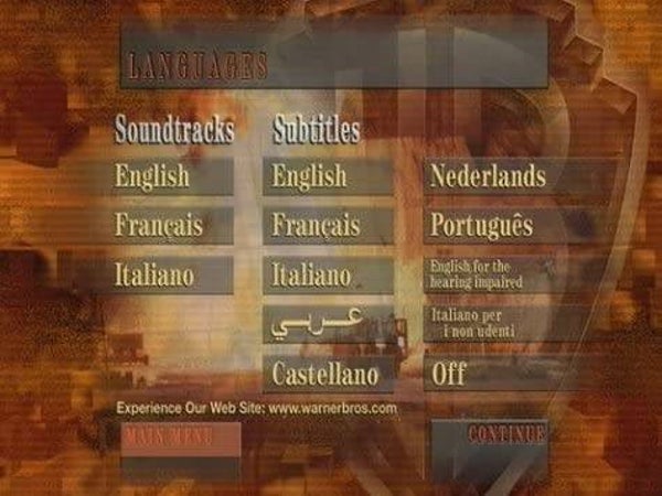 - Sous-titres : Anglais, Français, Italien, Portugais, Néerlandais, Arabe